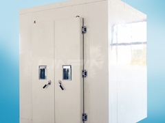 室体分为六个室体面及两扇室体大门,门尺寸为1500㎜×1600㎜,室体外材料为优质彩钢板内材料为镀锌钢板,保温介质为聚胺脂发泡隔热,质轻耐抗击,隔热性能佳,大门拉手为集装箱开启式门锁,以便于试验人员方便的开启大门。